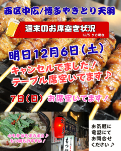 週末、お席空いてます!!ご予約のお電話、お待ちしております。